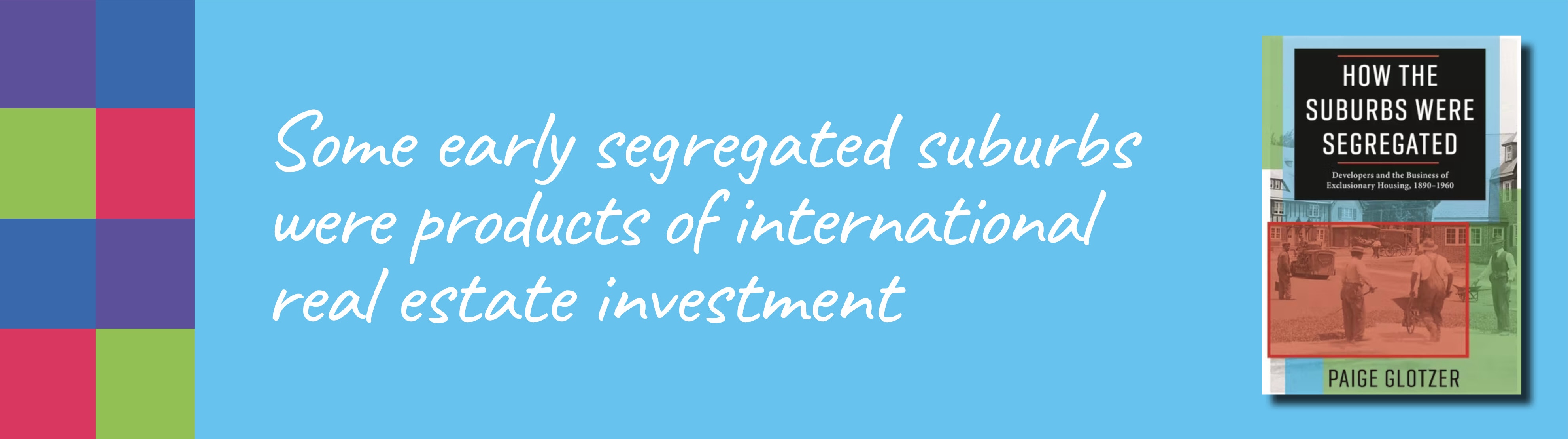 Glotzer, P. (2020). How the Suburbs Were Segregated: Developers and the Business of Exclusionary Housing, 1890–1960. Columbia University Press.