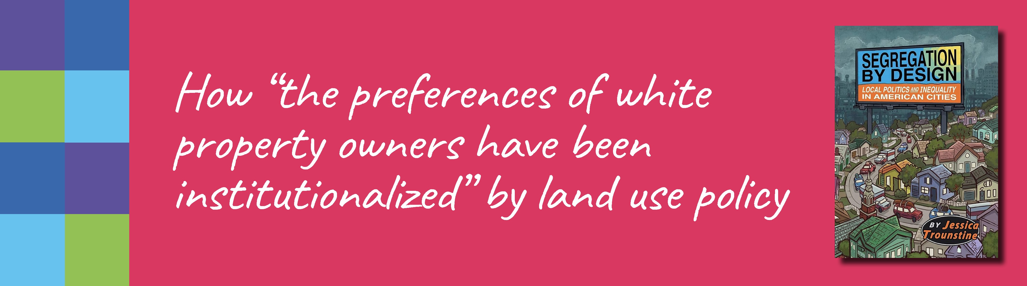 Trounstine, J. (2018). Segregation by Design: Local politics and inequality in American cities. Cambridge University Press.